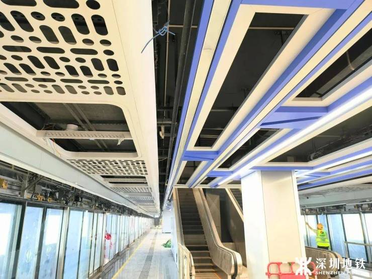 万众瞩目的大明星——12号线是支撑深圳西部发展轴的贴心的老铁早就准备好啦~站厅已基本完成装修站厅内照明设施、电扶梯等装置都已安排上啦~站厅装修以紫蓝色为主色调站厅内照明设施、电扶梯等装置候车区域的“左炮台东”…