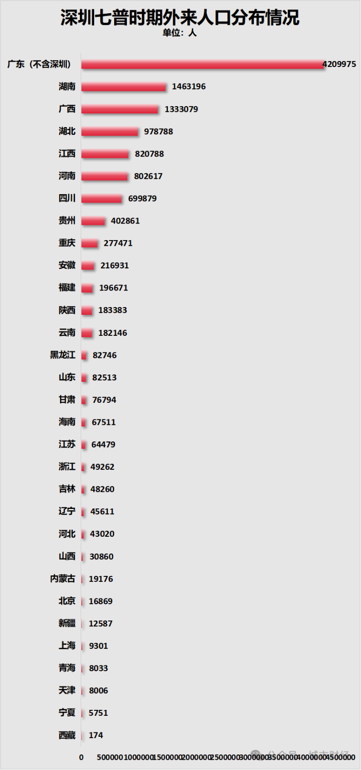 深圳外省人口中,规模最大占比最多的是湖南人。在深圳的湖南人有146.3万人,也即每10个外来人口中,就有一个是湖南人。