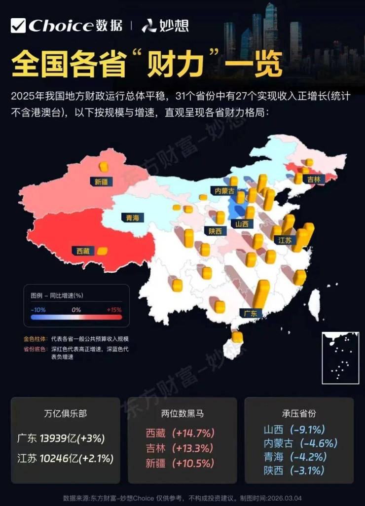 2025年,广东省一般预算内财政收入13939亿元,位居全国第一,是全国唯二超万亿财政的强省,比排名第二的江苏,足足高出了3500多亿元。