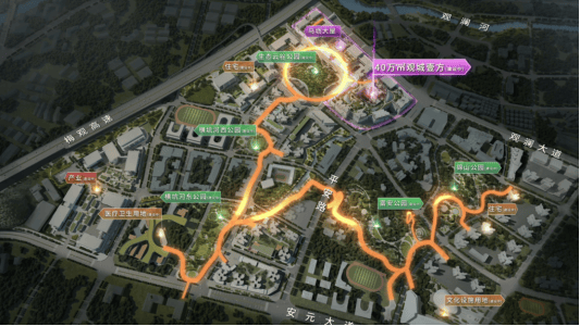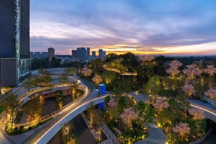 “这个空中连廊是我们观城独创的,总长超过3.6公里,将5大公园、商业区、住宅区、办公区和文化休闲场所全部串联起来。”