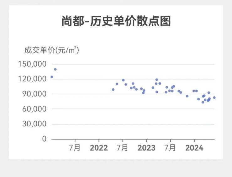 尚都也一样,在2024年之前房价普遍是在9万/㎡以上,而2024年普遍成交的房源单价只有7万+、8万+一平。