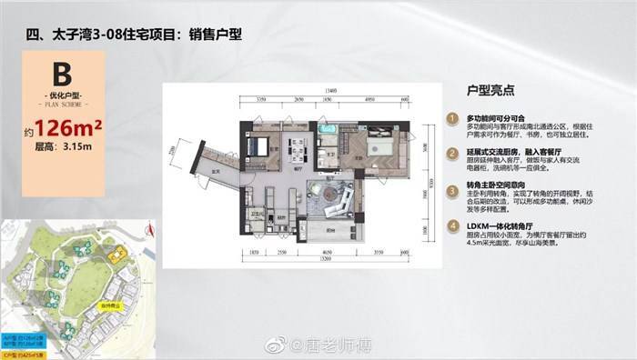 网友爆料,南山蛇口招商太子湾项目户型图出炉,户型为建筑面积约126平2房、425平5房,总共608套住宅,价格约13.2万/平,带装修。