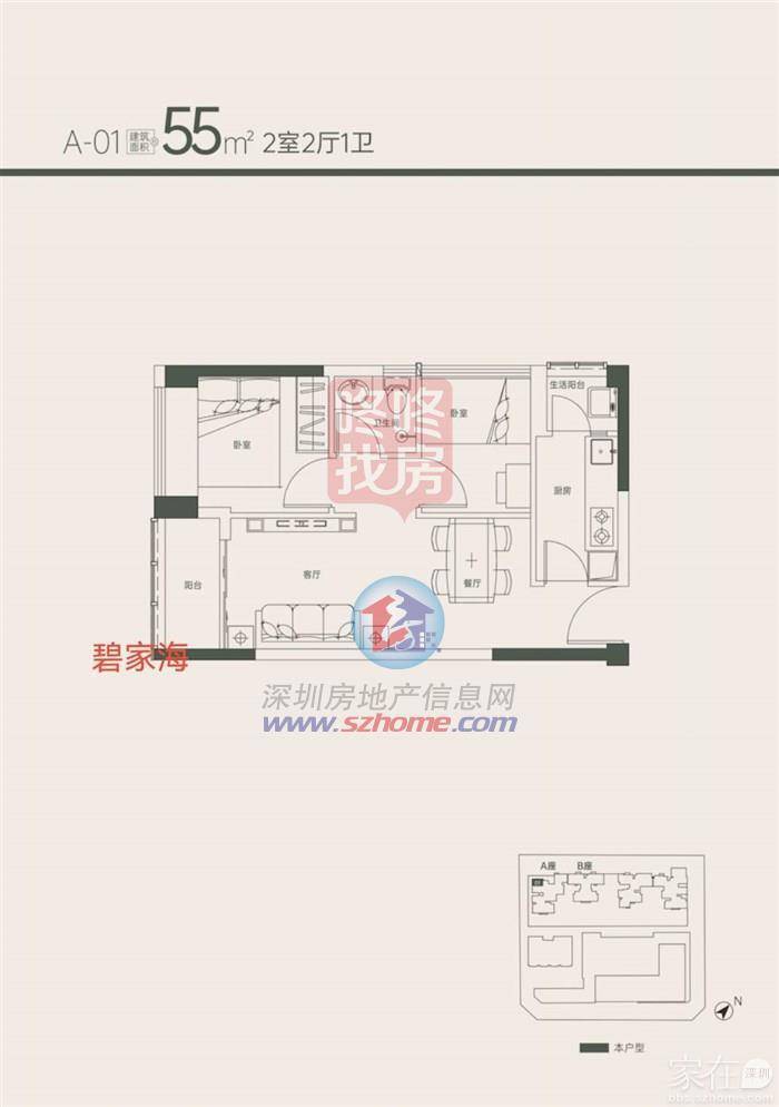 A-01 55㎡ 2房2厅1卫