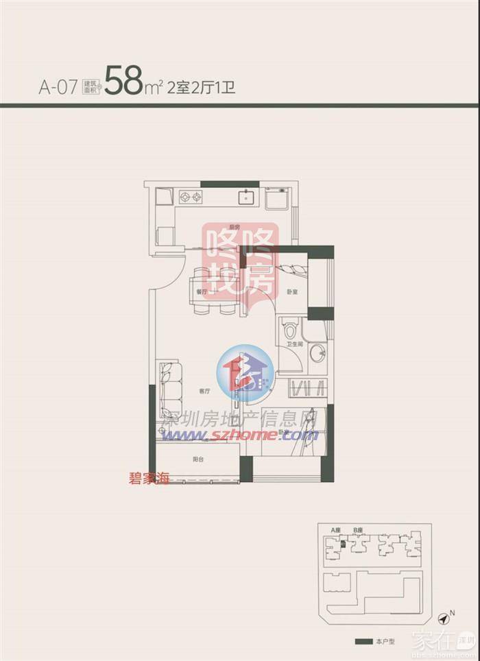A-07 58㎡ 2房2厅1卫