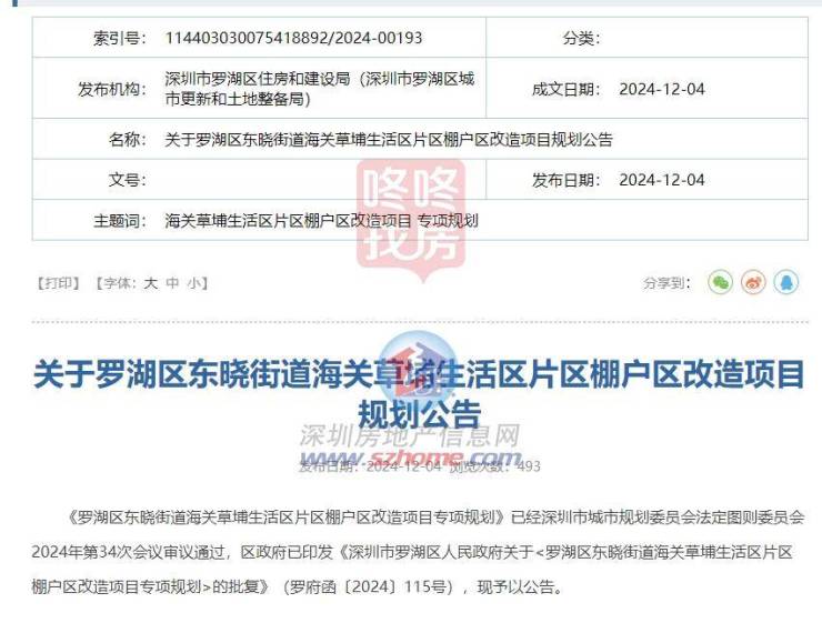 近日,罗湖区东晓街道海关草埔生活区片区棚户区改造项目规划公布。