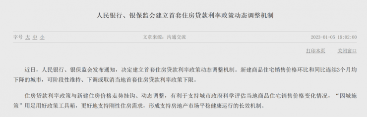 1月5日,央行、银保监会宣布建立首套住房贷款利率政策动态调整机制。