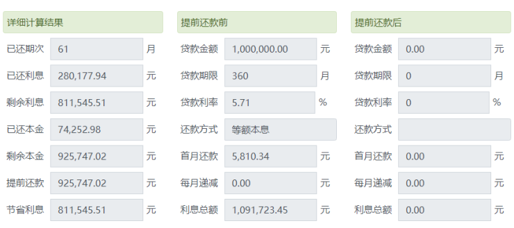 基于此,再假设A以等额本息、固定利率5.71%的方式还100万的商业贷款(只为简单说明问题),贷款年限30年,2018年10月首次还款,那么: