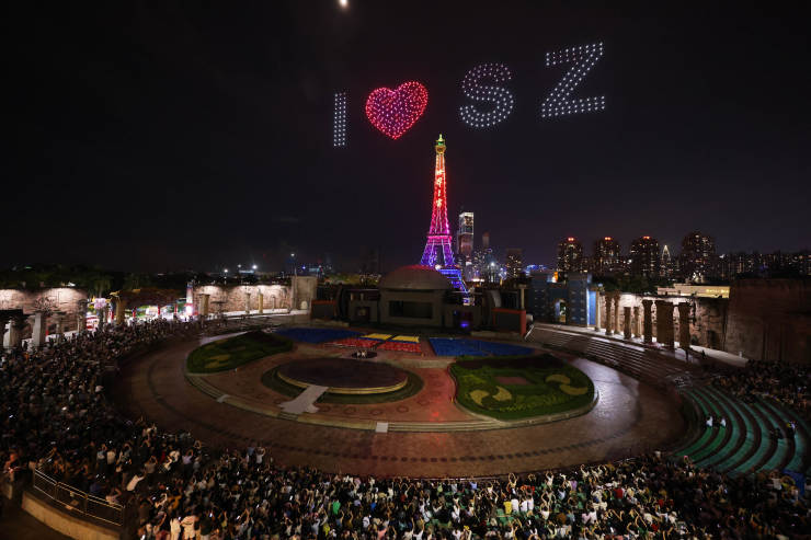 深圳首次无人机+烟花联合演出庆祝深圳世界之窗开园30周年