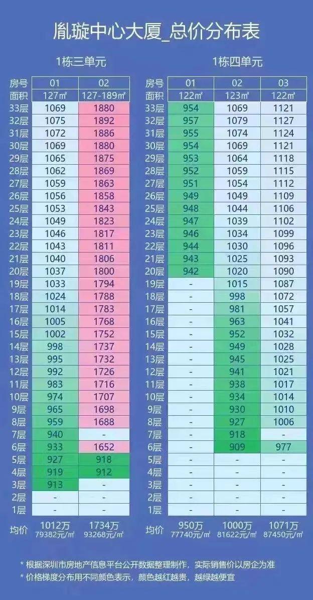 鸿荣源胤璇共备案129套住宅房源,主推户型为建面约122-189㎡4-5房户型,项目主推122-127㎡户型,189㎡仅有少量单位位于1栋02户型,项目备案均价约8.55万/㎡,备案总价区间950万-1737万元。
