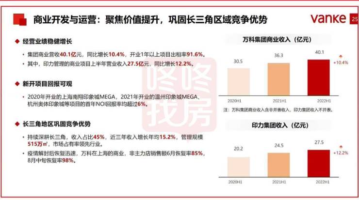 商业业务方面,上半年实现营业收入40.1亿元,同比增长10.4%,印力集团在沪杭新开业的商场首年NOI率达到6%。此外,印力继续推动轻资产战略落地,截至6月底,累计输出管理项目达35个,管理面积231.3万㎡。