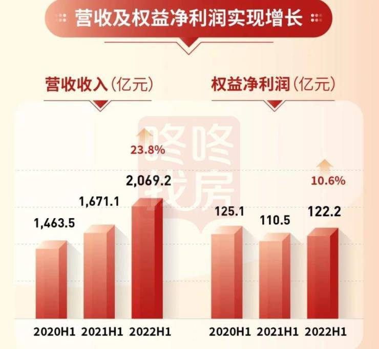 万科发布2022年半年度报告,实现营业收入2069.2亿元,同比增长23.8%;实现归属于上市公司股东的净利润122.2亿元,同比增长10.6%。尽管上半年行业挑战巨大,万科的两大业绩关键指标依然实现了郁亮在年初所说的企稳回升。