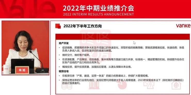今天(8月31日)上午,万科通过线上举办2022年中期业绩推介会。