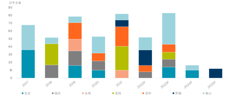 戴德梁行研究院副院长、华南区研究部董事张晓端认为,持续高供应仍是深圳写字楼市场的较大挑战之一。未来5年深圳将迎来约602.8万平方米的甲级写字楼新供应,其中下半年预计将有48.6万平方米甲级写字楼新增供应投入使用,尤其在整体需求放缓的背景下竞争压力不减。与此同时,一季度大规模管控和常态化防疫措施对施工造成影响,大环境的变化也给开发商资金链带来挑战,在建项目的竣工时间普遍需要推迟,未来供应的高峰预计从去年末估计的2022—2024年延后到2025年。