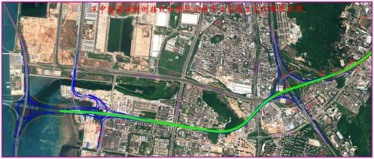 广深沿江高速公路深圳段二期工程位于深圳市宝安区境内,包括「深中通道深圳侧接线」和「国际会展中心互通立交」(已于2019年11月3日投入使用)两部分。