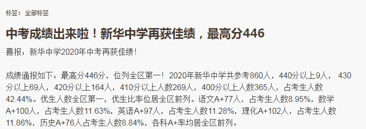 以下内容为网友发布的各个学校中考捷报汇总,仅供参考,最终数据以学校公示为准。小编也将继续添加学校中考情况,欢迎网友爆料。