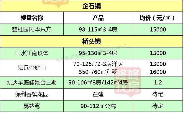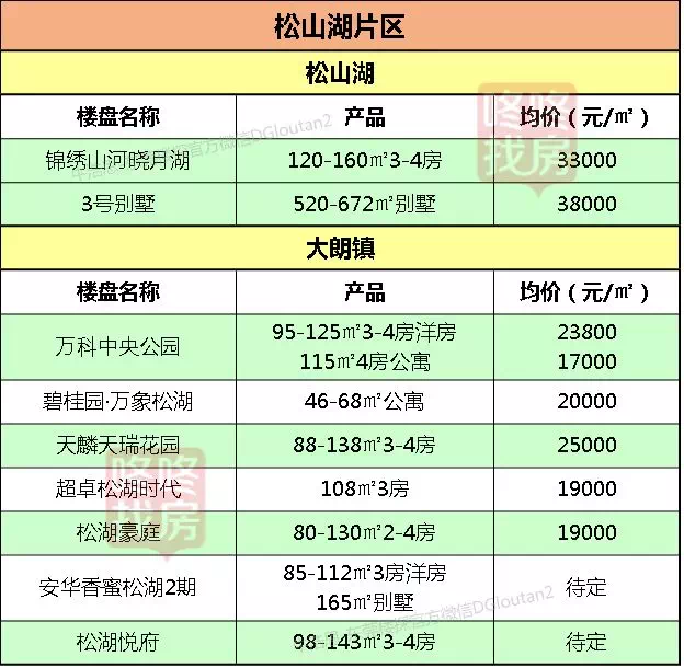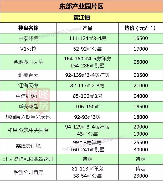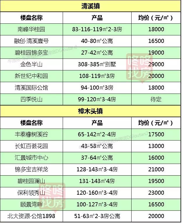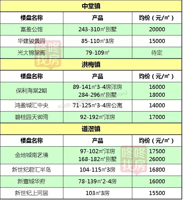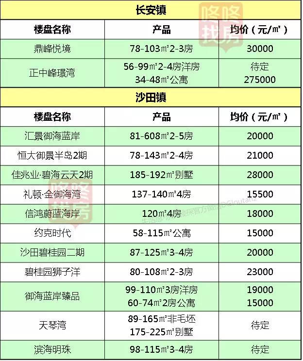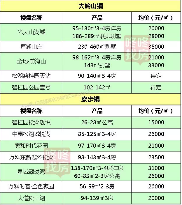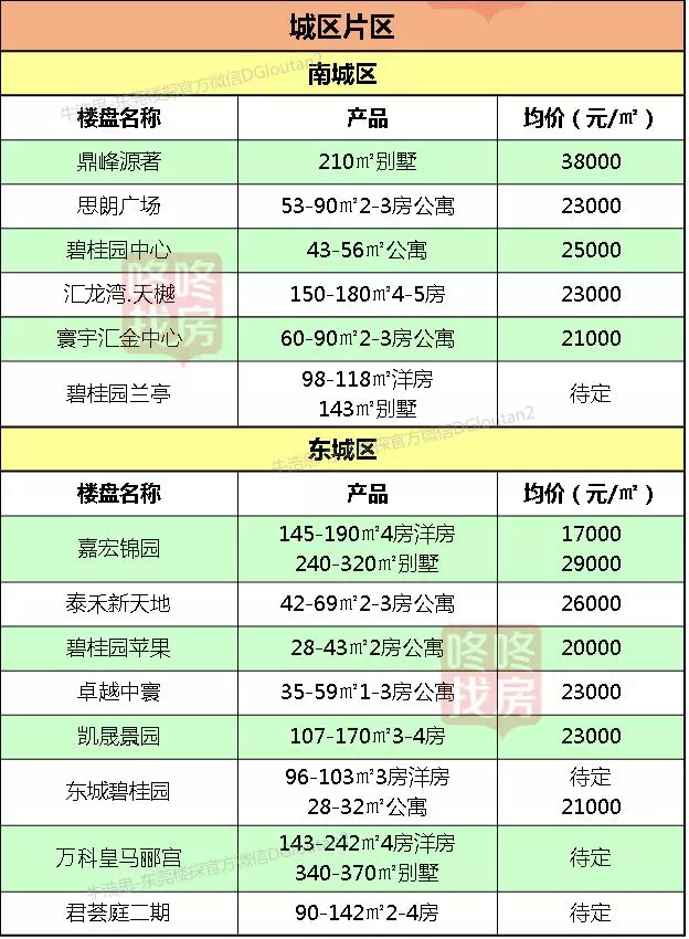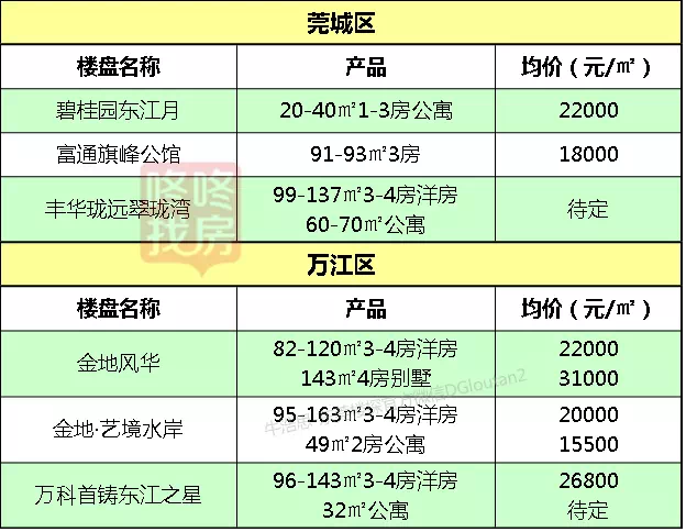 东莞各镇区在售新盘价格表