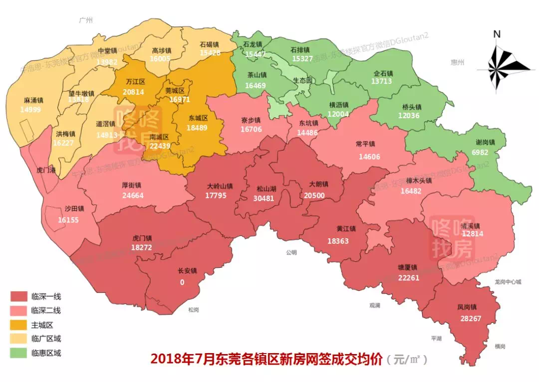 目前东莞仅松山湖(30481元/㎡)均价突破3万;7个镇街均价破2万元/㎡:松山湖、凤岗、厚街、南城、塘厦、万江、大朗;销售均价在1.5-2万元/㎡的有14个镇街;销售均价在1.5万元/㎡以下的有11个镇街。除长安镇(无成交)和谢岗镇外,其他所有镇街均超过1万元每平米。