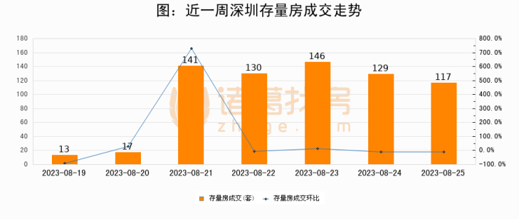 从存量房来看,2023年08月25日深圳存量房单日成交117套,比昨日减少12套,环比下降9.3%。从近一周存量房成交来看,深圳存量房日均成交套数为99套,08月25日单日成交117套,高于近一周平均水平18.2%。