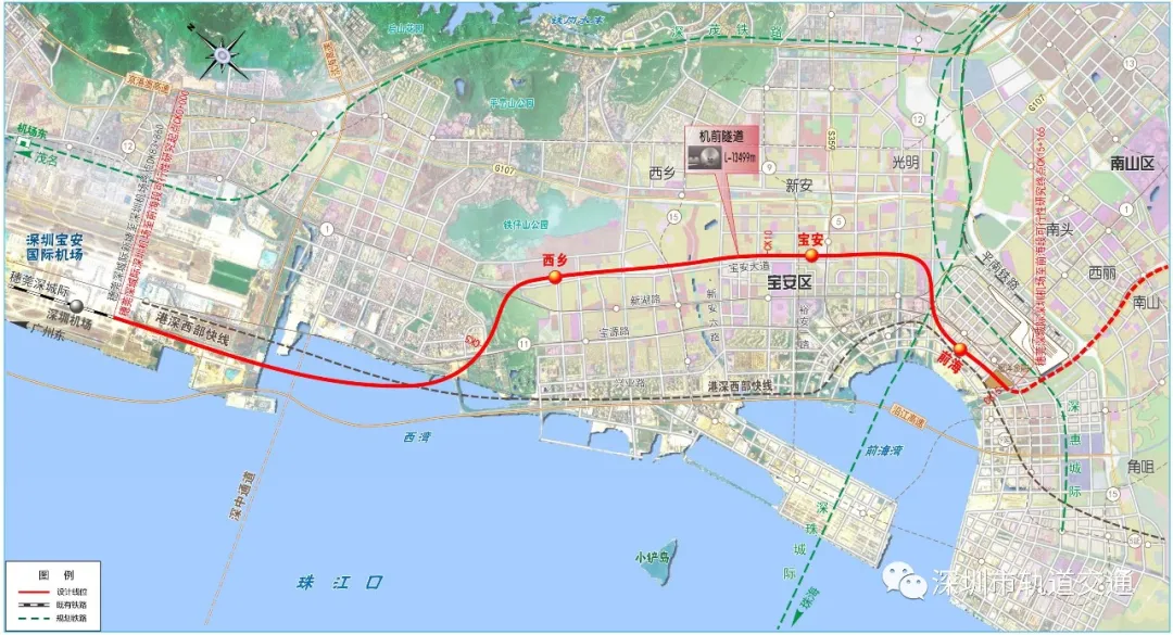 穗莞深城际机前段(全称“穗莞深城际铁路深圳机场至前海段”)起于已开通穗深城际深圳机场站,终至前海站,是大湾区城际铁路网广深主轴的重要组成部分。
