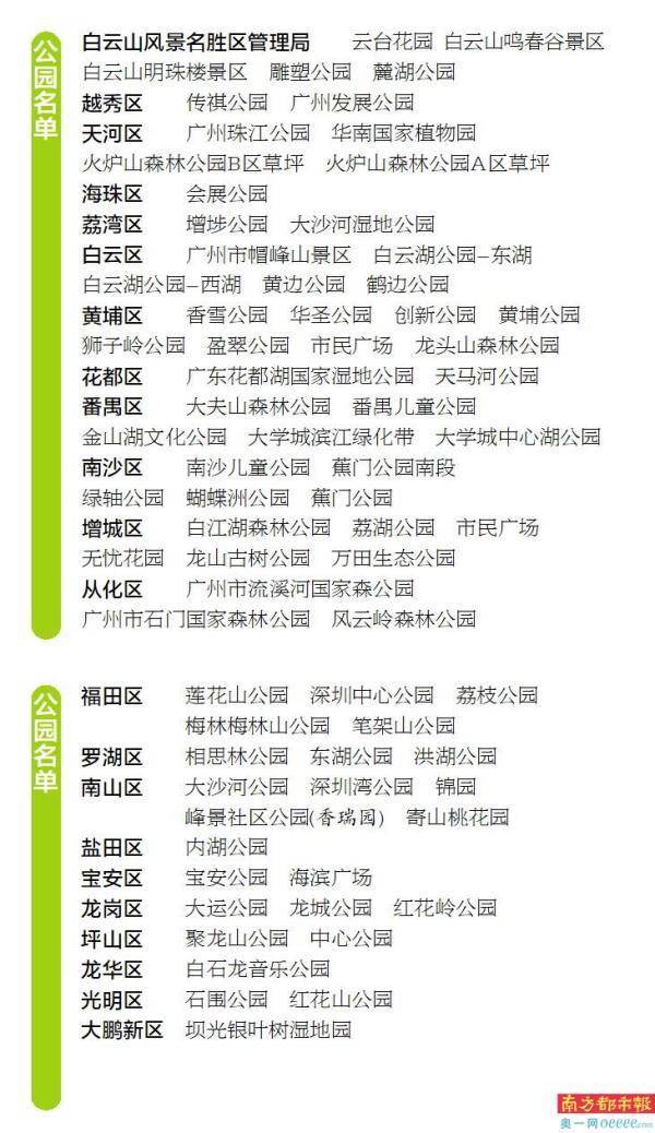 此外,华南国家植物园开放了4个位置;白云湖公园的东湖、西湖共开放了11个位置,是开放点位最多的公园;番禺区的大学城滨江绿化带、大学城中心湖公园等也同步“上榜”。