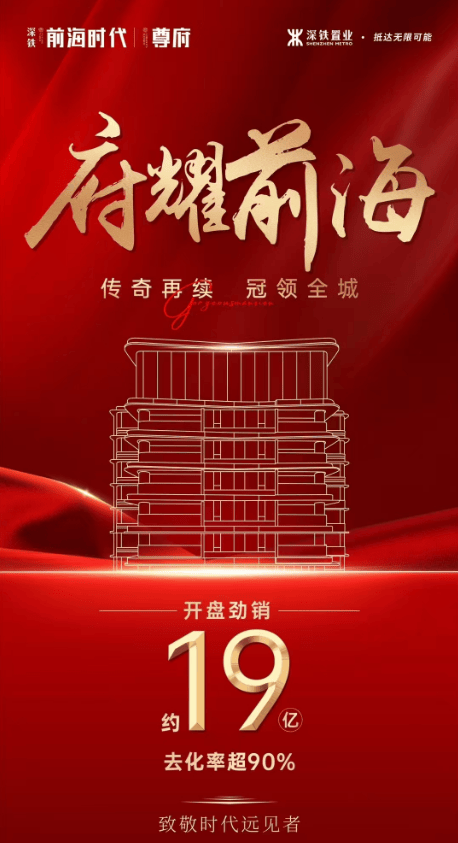 4月26日,深铁前海时代尊府开盘,项目官宣去化超9成,收金约19亿元。