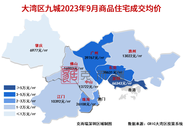 另一组是克而瑞深圳发布的大湾区9城9月商品住宅成交均价,深圳成交均价约66343元/㎡,环比微涨4.4%