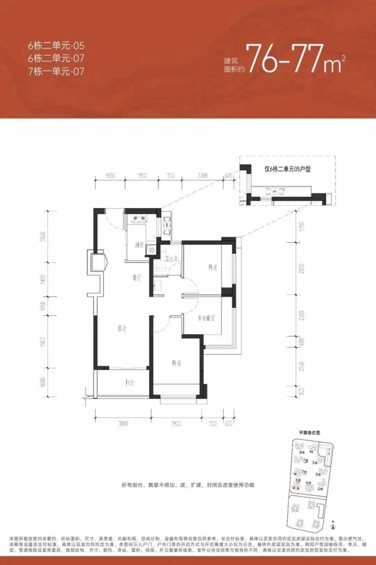 15种79㎡及以内的3房1卫户型,其中最小建面仅70㎡;
