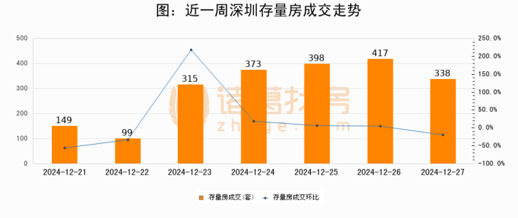 【深圳成交日报】12月27日新房成交199套、二手房338套;涨价房源11套