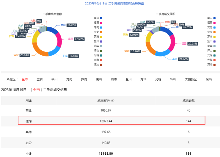 10月19日深圳新房住宅网签137套 二手房住宅网签144套