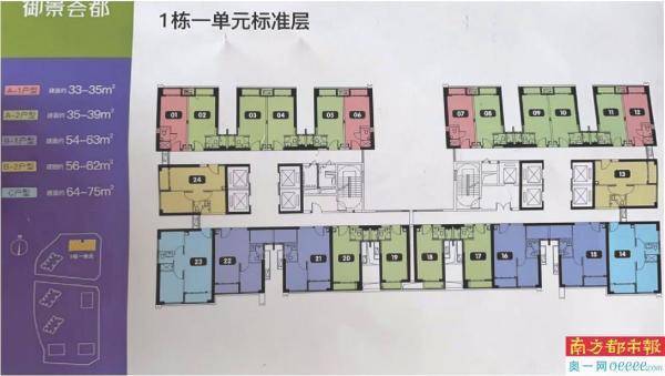 南都·湾财社记者查询深圳房地产信息网了解到,御景荟都于2019年备案,预售总套数为1559套,现场销售计算的1栋单元小户型房源备案价格为19610.82元/㎡,备案总价73.38万。而同楼层同户型的1栋2单元房源备案单价为22377.82元/㎡,相差2767元/㎡。