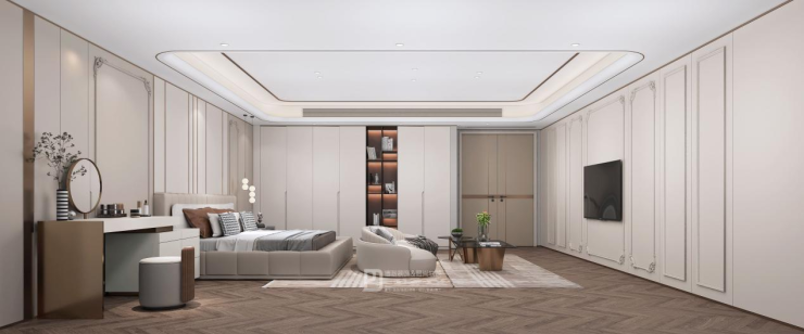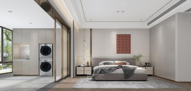 主卧套房另设有衣帽间和主卫,我们希望赋予居者的是一种贴合个性需求的生活方式,无需过多干预,一束清丽的花、一抹梳理装扮的笑容,都能让身处其中的人获得感官上的便利与享受。