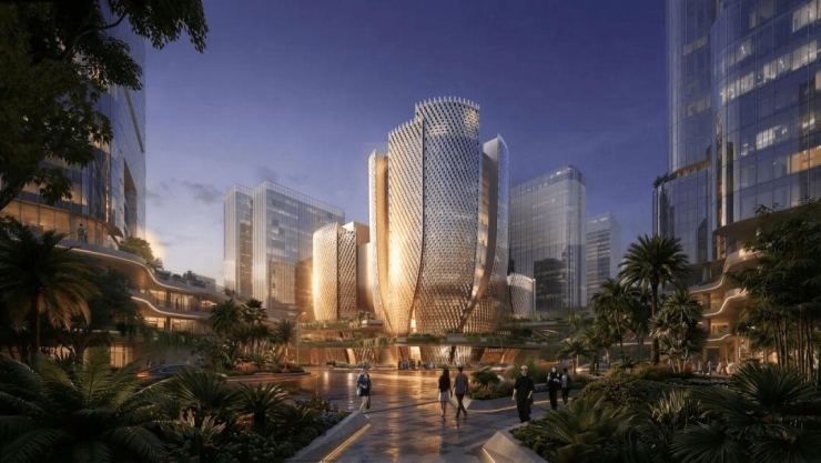 总建筑面积达22.8万平方米,集办公楼(3.9万㎡)、艺术中心(1.9万㎡)、高奢酒店(2.6万㎡)和商业街区(1.8万㎡)于一体。