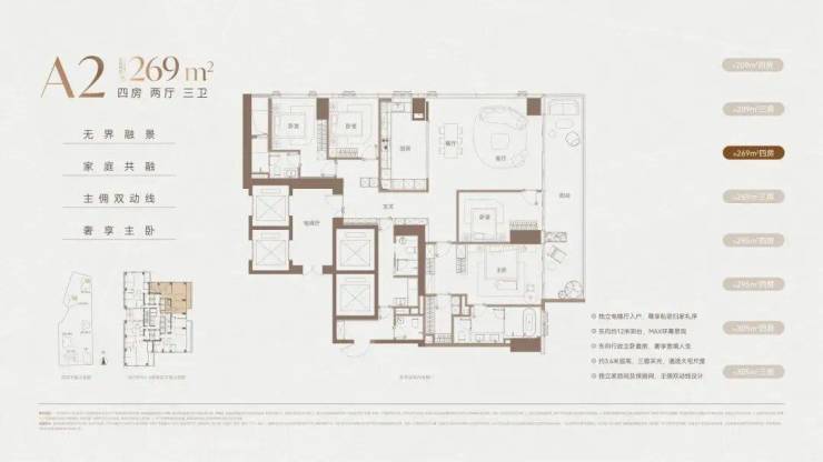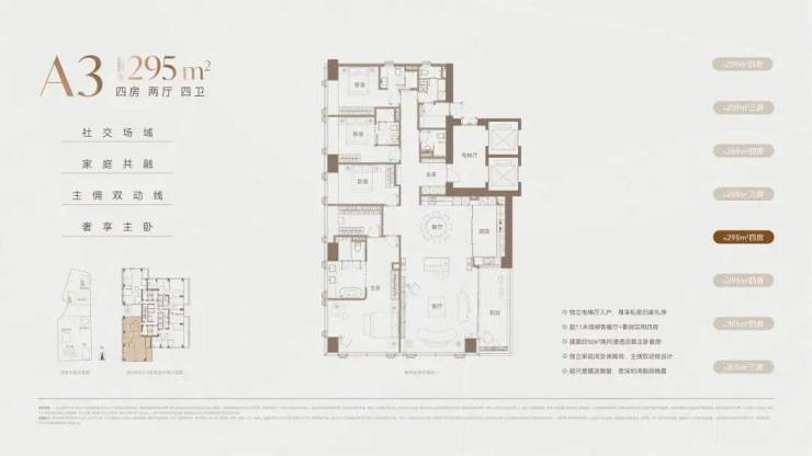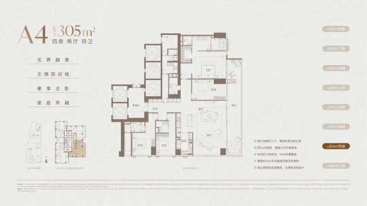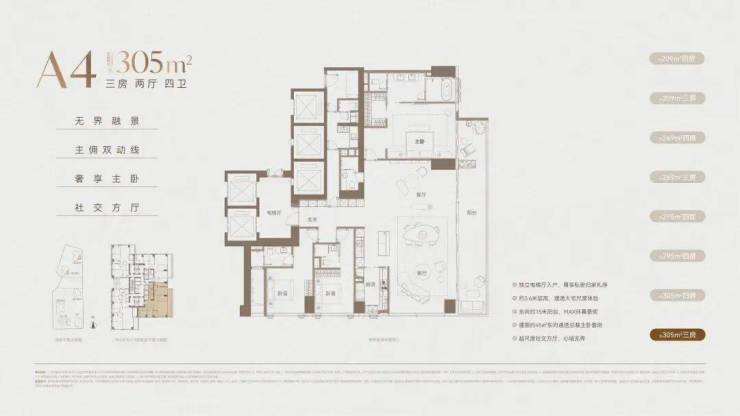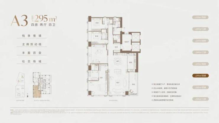 价格方面,T4低区折后均价约15.3万/㎡,其中西南约295㎡户型,折后最低单价约13.6万/㎡起;