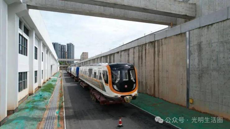 7月17日晚,首列客车通过江门中车四方厂辆专用运输车运载,平安抵达公明车辆段现场,7月18日上午,在接车现场按顺次顺利完成8节车厢的卸车、编组、检查、入库等工作。