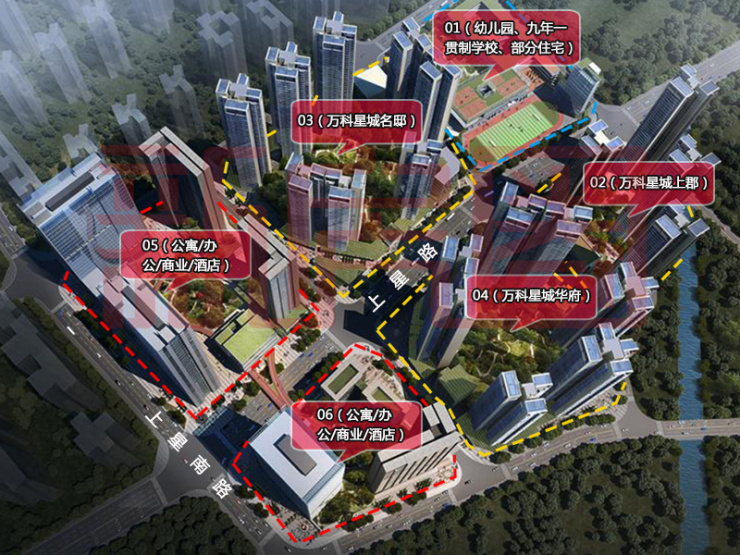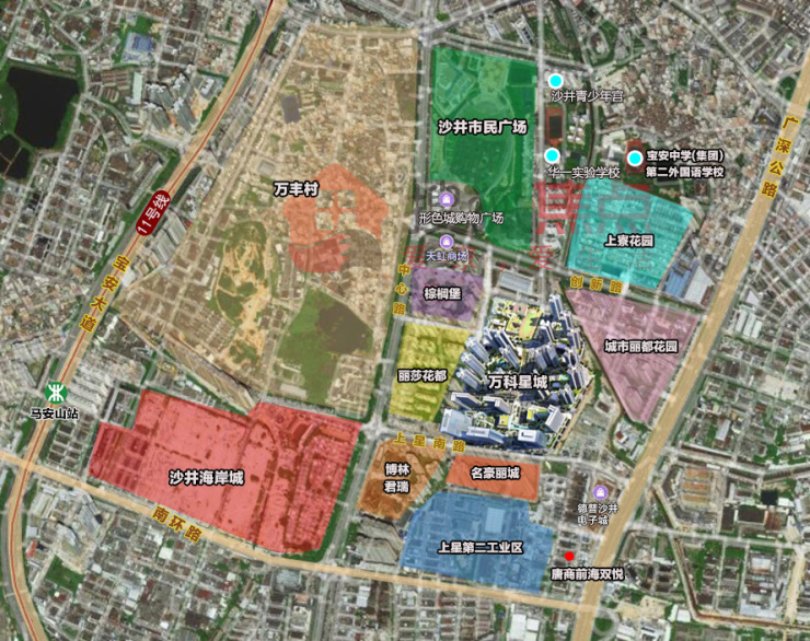 万科星城位于宝安沙井片区,由上星南路,富通路,企安路和万丰河围合。前身本是沙井街道上星工业区城市更新单元。项目占地面积约12万㎡,总建面约64万㎡,规划建设涵盖教育、商业、办公和住宅于一体的街区型综合体项目。