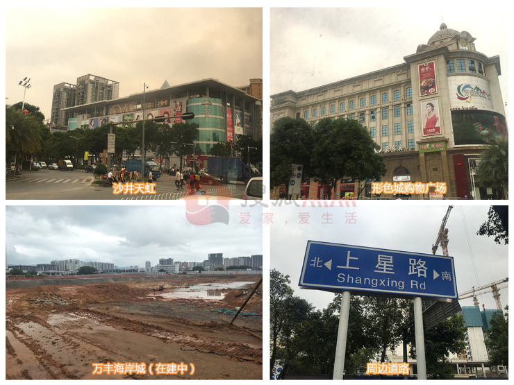 由于沙井的发展较晚,因此目前片区内的商业配套较为落后。目前片区仅有天虹商场、形色城购物广场,另外就是一些中小型的分散式商超。但后期沙井的商业将得到进一步的完善。首先是万科星城自带约18万平商业外,还有目前已经在建的建面约14万平的沙井海岸城,因此后期的商业还是值得期待的。