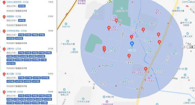 除了地铁,项目周边1公里范围内有10个公交站,其中最近的是沙井中心批发市场站。