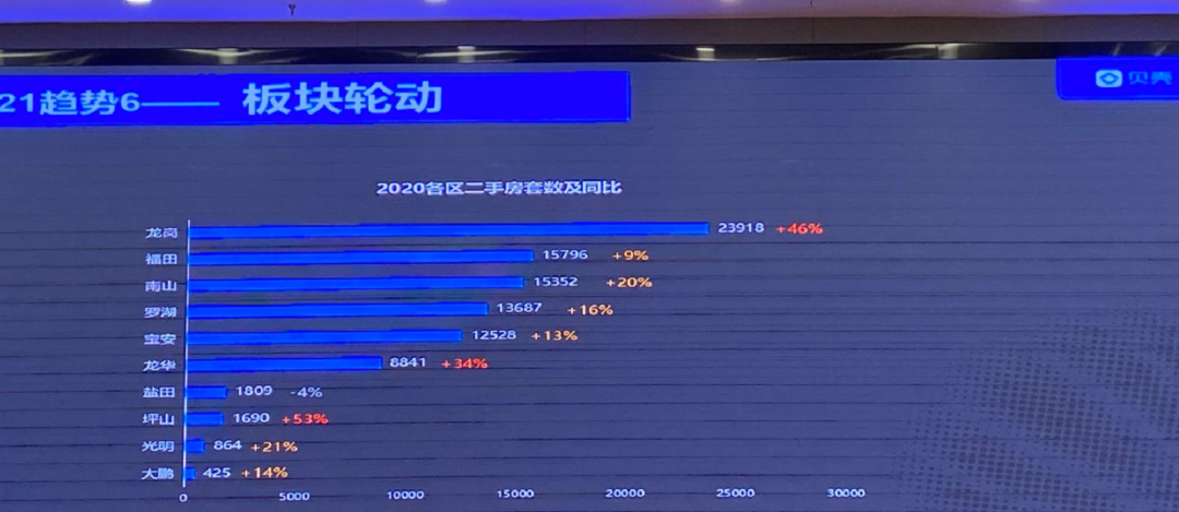 除了轨道新盘销量可喜外,二手房也出现了明显的分化。贝壳数据显示,2020年,深圳二手房成交套数涨幅最惊人的是深圳坪山、龙岗、龙华,分别为+53%、+36%、+34%。