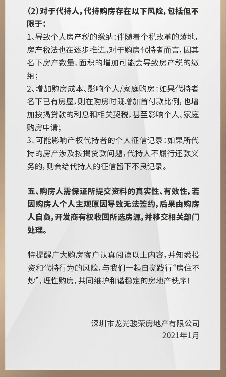 深圳龙光项目官微刚刚发布的代持提示