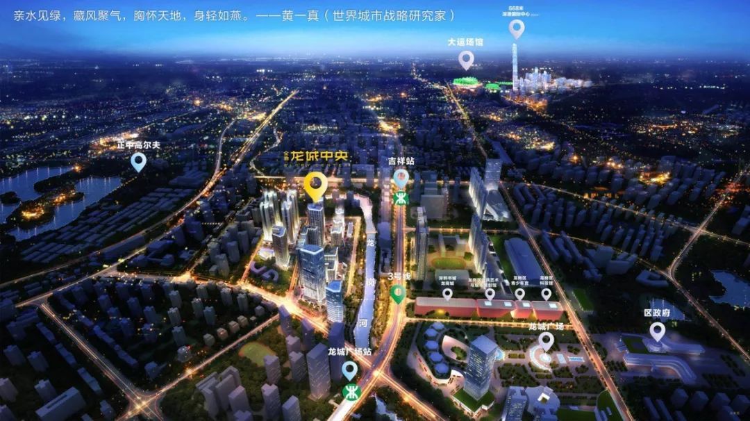 该项目位于龙岗大道和龙城大道交汇处,且在地铁3号线吉祥站和龙城广场站附近,属于双地铁口物业,未来还会有14号、16号、21号等多条轨道交通线路建成,其中14号线是东部快线。以后半个小时即可到达福田,无论是公路还是轨道交通,都颇为便利。