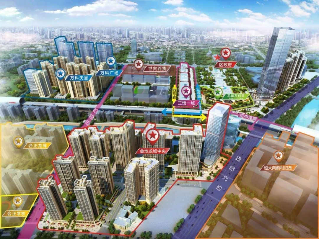 ● 金地龙城中央项目所在的龙岗中心城还是该区域难得的中心地段,紧邻龙岗区政府、商业配套多样、公园环绕,交通和生活配套都较为便利。