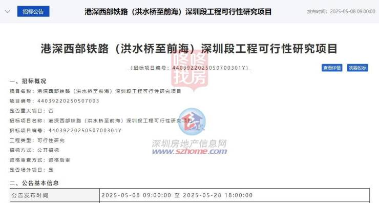 另一个是港深西部铁路(洪水桥至前海)深圳段工程,估价3183.4万元进行可行性研究招标!