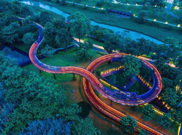 “东西丝带”超级生态绿以“山海连城”战略为笔接城市繁华,引山海诗意创造多元生境空间极富设计创意。