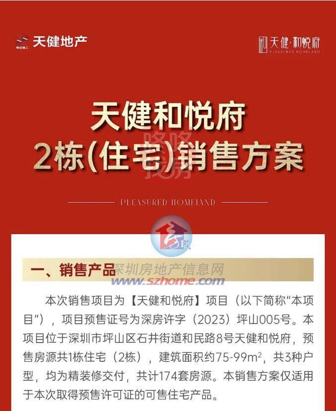 5月26日,位于坪山的天健和悦府取得预售许可,项目于5月27日-5月29日进行诚意登记,项目主推75-99平精装3房。均价39300元/平。