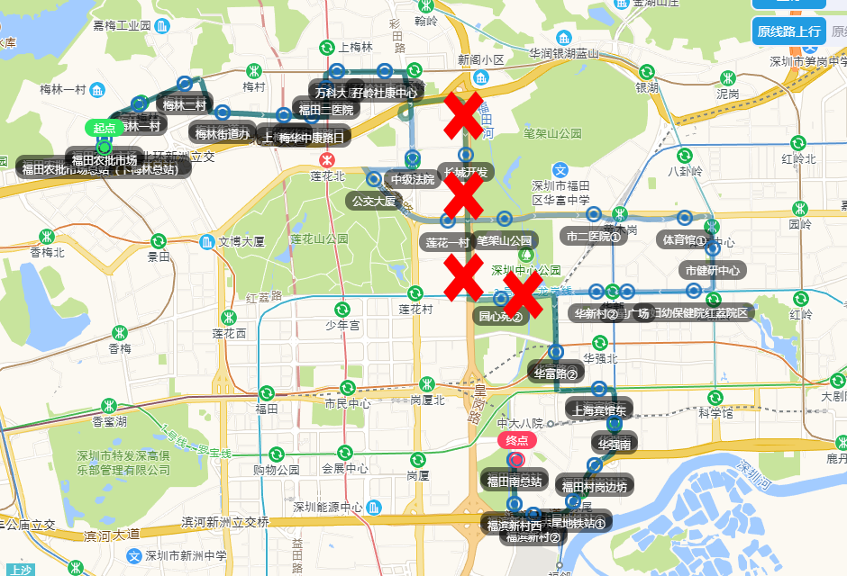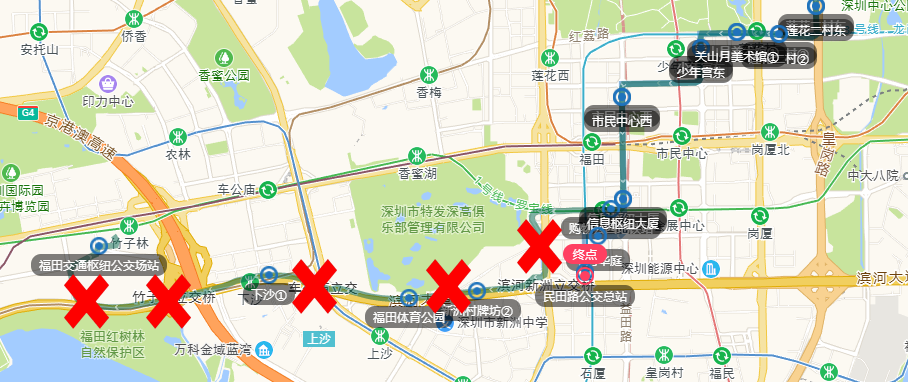 一端总站由福田交通枢纽公交场站调整为民田路公交总站。