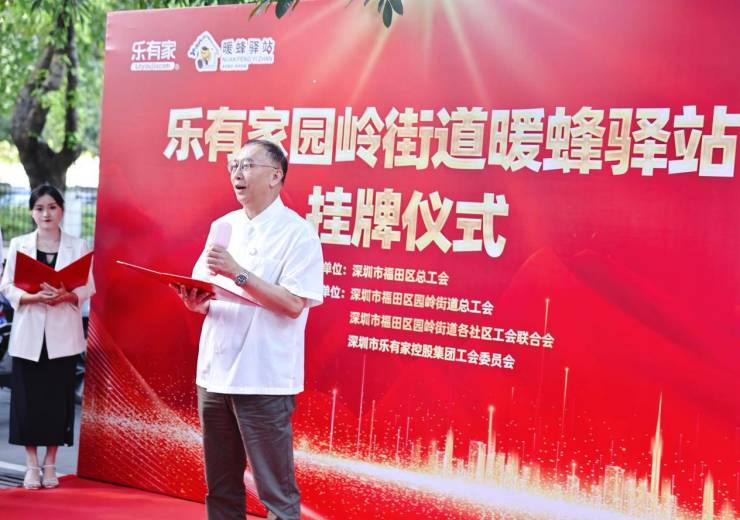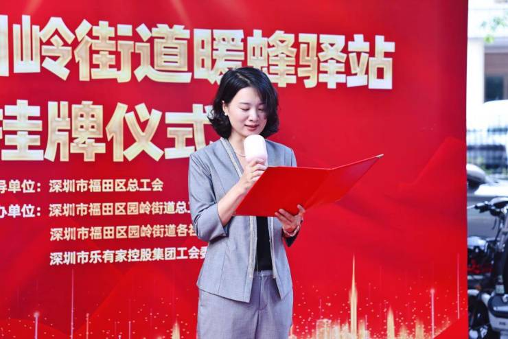 仪式上,乐有家控股集团营销副总裁郭凤敏女士介绍了乐有家一直以来在便民体系建设上的举措,并表示“很高兴此次乐有家8家暖蜂驿站齐开,为更多有需要的人提供搭把手的服务,让新就业群体、户外劳动者的生活因为有我们更便利。这与乐有家'社区好帮手'的品牌形象不谋而合。非常感谢福田区总工会的指导、园岭街道和各社区的认可,协会的支持与肯定,让我们内心也更加坚信,做好社区服务、共建美好家园。”