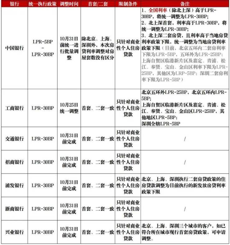 但值得注意的是,北京、上海、深圳,二套房不参与最低存量房贷利率调整至LPR-30BP。