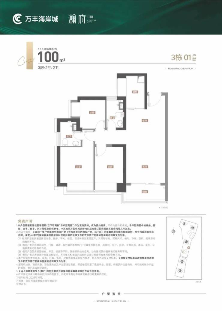 2023年万丰海岸城瀚府推建面约100-120㎡,均价5.74万/㎡,首开当日去化率约7成。