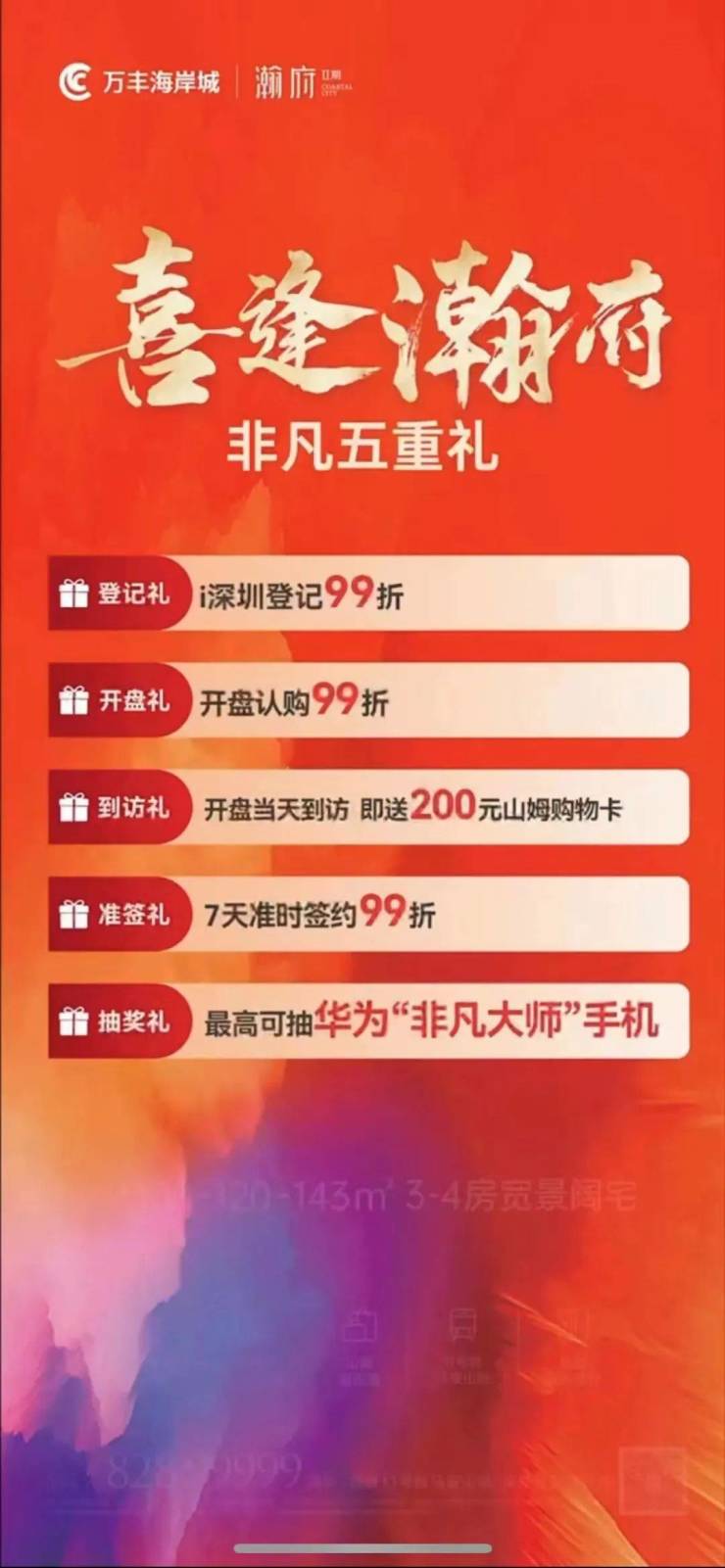 据开发商消息,此批单位开盘享97折优惠(i深圳登记99、开盘认购99、7天准签99),折后单价4.8万/㎡起,均价约5.33万/㎡,总价488万起。
