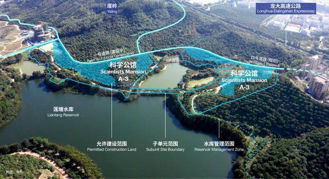 依山就势谋划建设科学公馆、科旅之家与多功能馆、美术馆与特色运动馆及其他科研服务配套,以及围绕楼村水塘、莲塘水库建设的两个特色公园。
